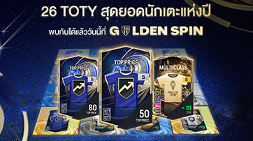 GOLDEN SPIN มาแล้ววว เตรียมพร้อมออกล่าสุดยอดนักเตะแห่งปี กับคลาส 26 TOTY เริ่มต้นเพียง 1 บาท เท่านั้น !