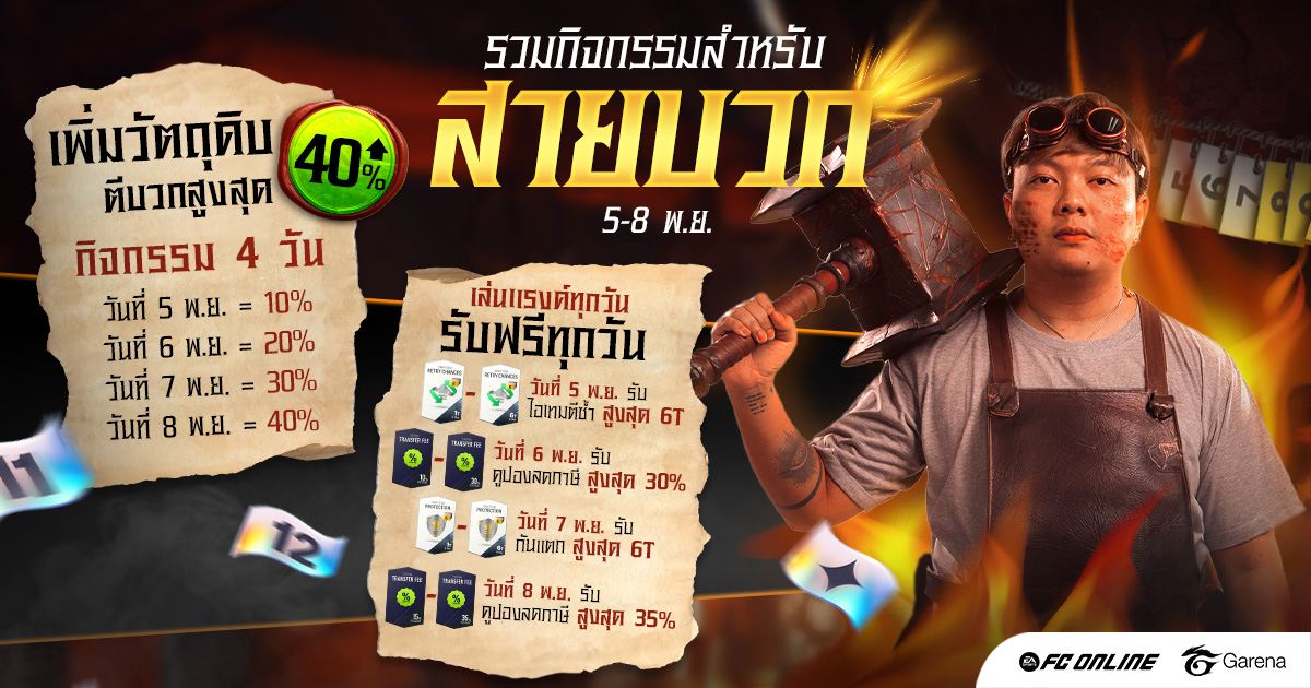ระหว่างวันที่ 5–8 พฤศจิกายนนี้เท่านั้นเข้าสู่เกม FC Online แล้วตีบวกให้สุด!