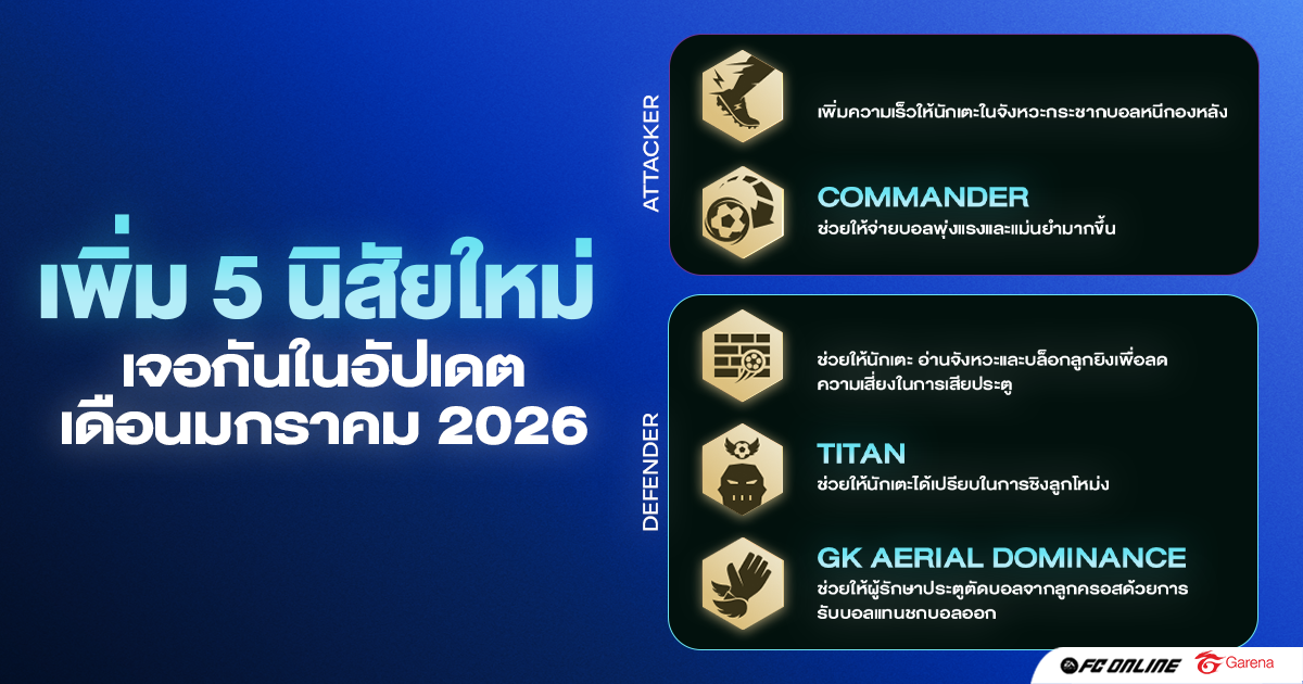 EA SPORTS FC Online เปิดอัปเดทใหญ่ประจำเดือนมกราคม 2026 ที่รวมการปรับปรุงระบบการเล่นครั้งสำคัญ พร้อมฟีเจอร์ใหม่และการอัปเกรดนักเตะระดับตำนาน