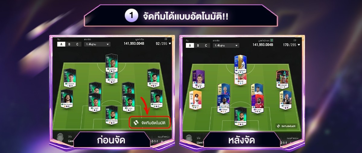 - ระบบจะเลือกนักเตะที่ดีที่สุดให้ทันที