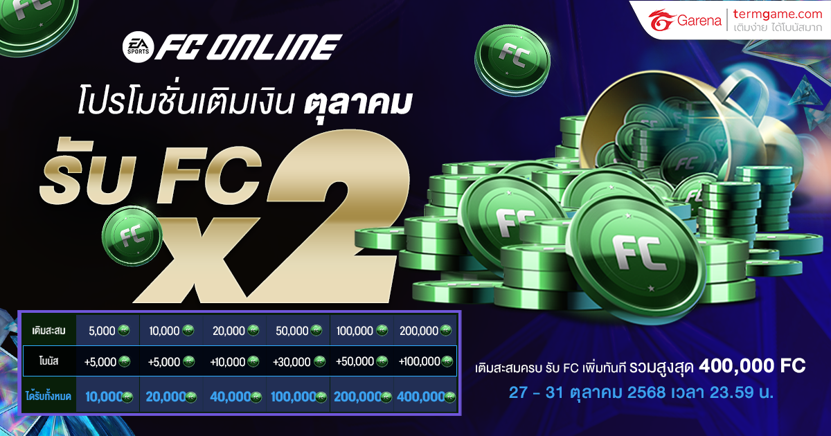 เติมสะสมครบ รับ FC เพิ่มทันที รวมสูงสุดถึง 400,000 FC